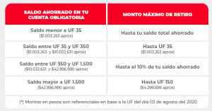 *Si tu saldo es menor a UF 35, el monto del retiro se pagará en una sola cuota.
